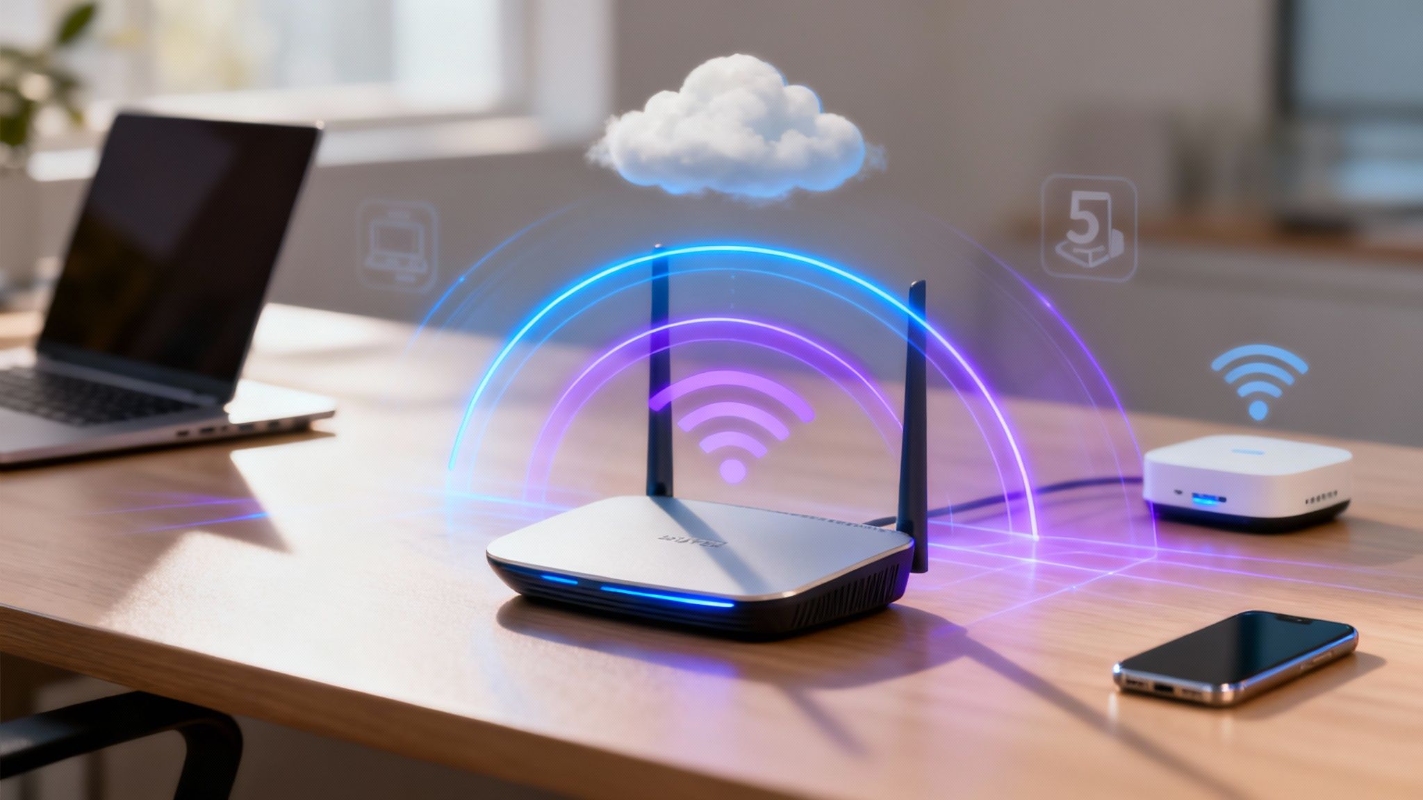 Stellen Sie sich WLAN am besten wie einen unsichtbaren, aber extrem ausgeklügelten Radiosender für Daten vor. Im Grunde ist die Funktionsweise schnell erklärt: Ein zentraler